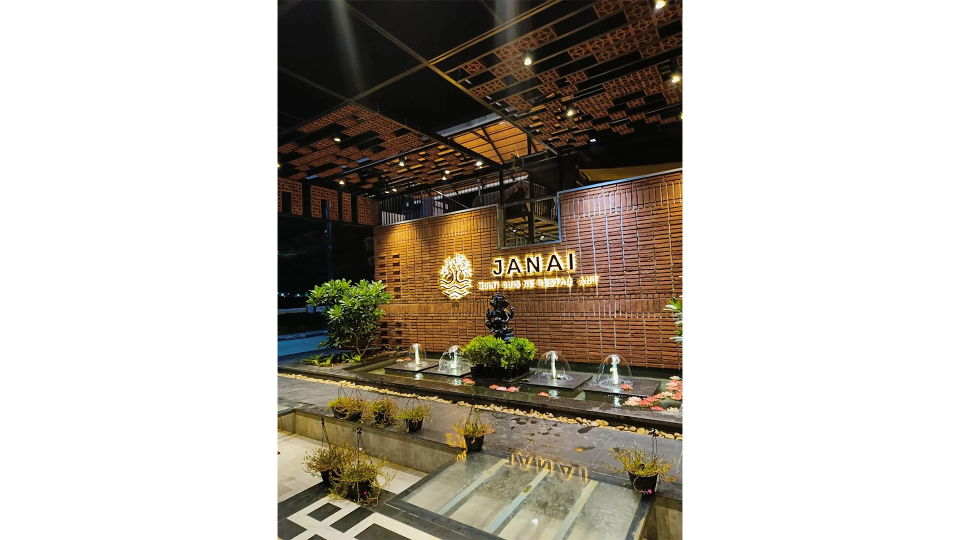 “Janai Multi-cuisine Restaurant” is a cozy and specious space to enjoy your holidays. Its now sits on a rectangular plot of land that stretches from the road to the edge of the urban neibourhood. The concept of the restaurant is to attract even wider audiences to come. Pleasent water body, brightly lit garden and brick clading is placed intograceful entry that would serve to pull the attention of oncoming customers. The flora and fauna also serendipitously add to an atmosphere of comfort and relaxation. Together the greenery, brick walls, and courtyard are playfully illuminated with strays of natural light, all while allowing the breeze to flow refreshingly through the restaurant all day long.