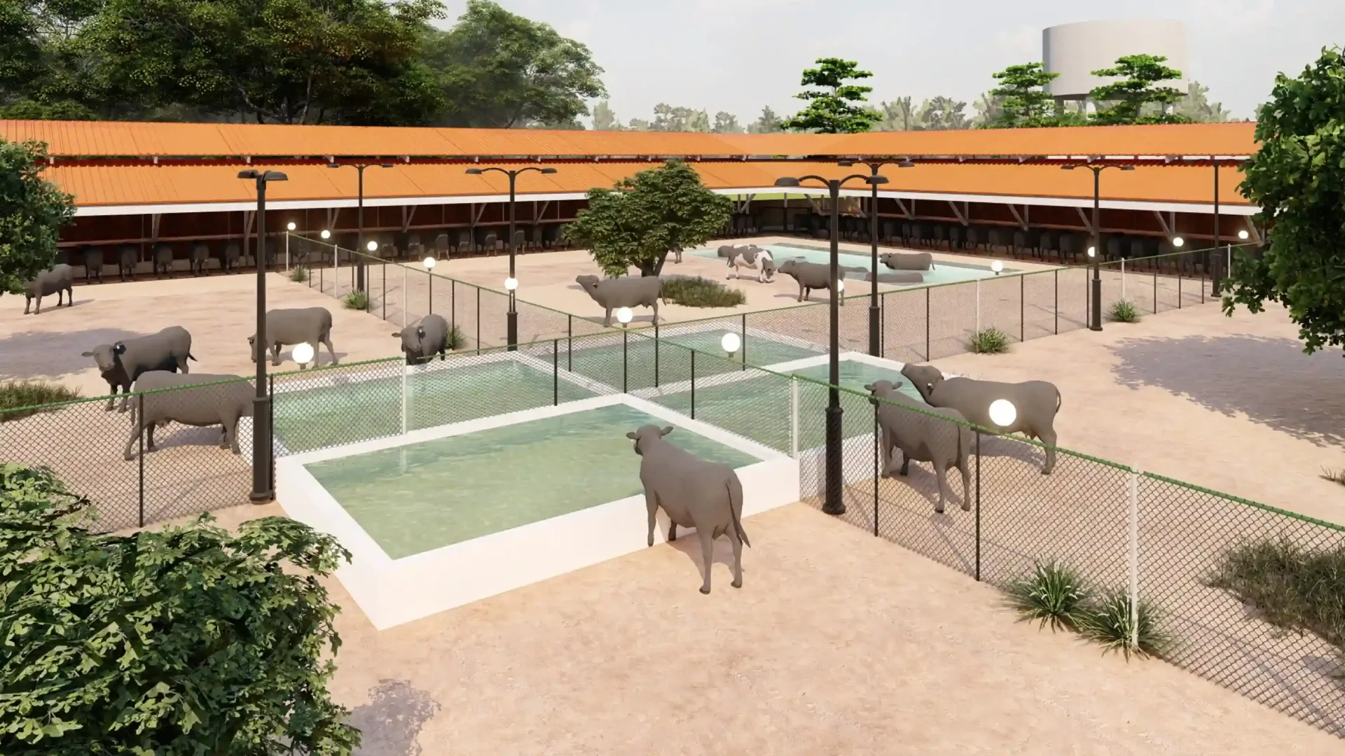32000 sq.ft. breeding center spread over 2 acre of land which is located in rural part of the Devgad, Shiravli. Breeding center accommodates 300-400 cows and buffaloes along with ancillary facilities. We prioritize efficient space management, circulation, drainage, and ventilation systems in order to promote better cow health and milk yield. the final design was informed by existing site conditions and the need to divide different types of cows; milking cows, non-milking cows, pregnant cows, calves, and buffaloes. The space is carefully designed to consider the efficiency of inlet food flow for the cows and the removal of organic waste such as cow faeces and urine. Systems to collect milk is also incorporated into the design. The space is ‘cattle sensitive’, providing necessary facilities and building a healthy environment for the cows