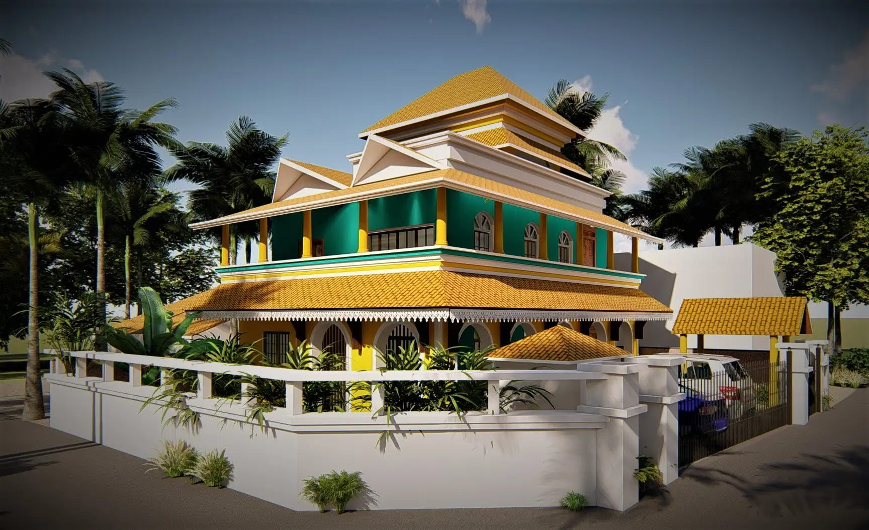 DR’S villa is a renovation project which is elegant with arches, subtle cohesion of colours set the tone at Amger, a Portuguese-style villa in Goa. 3000 sq.ft house design as per the concept of “true to the land and held on to the charm of the goan era in which the house was built” and sidestepped stereotypical interpretations of modernism. The goal was to respect the property’s history while avoiding a formulaic or prescribed look. Villa developed by connecting the interiors to the outdoors with a series of windows, verandas and balconies. “The whole process wasn’t just about restoring the old house and adding features, but also about connecting the old with the new. We wanted to merge the two and have a movement and aesthetic flow through the home”. A sense of nostalgia and continuity flows seamlessly through Amger. “We were very clear that the restoration had to salvage every little architectural detail from the pillars to the old doors, locks and memoirs. But at the same time, it had to be comfortable and luxurious for family and guests.
