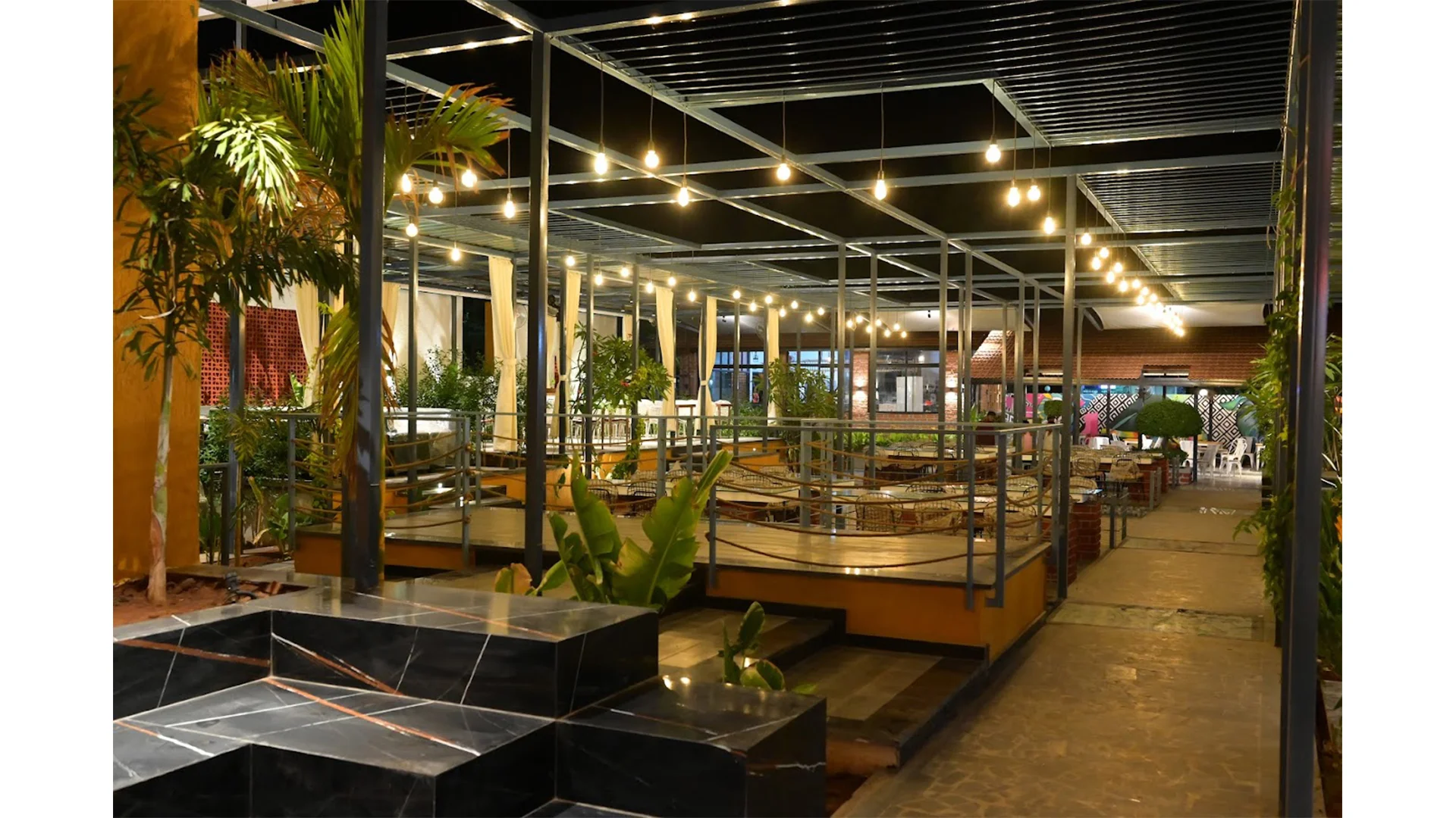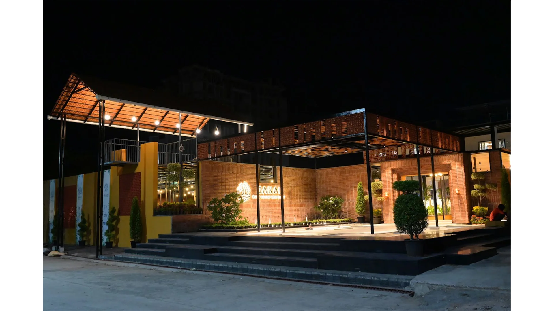 “Janai Multi-cuisine Restaurant” is a cozy and specious space to enjoy your holidays. Its now sits on a rectangular plot of land that stretches from the road to the edge of the urban neibourhood. The concept of the restaurant is to attract even wider audiences to come. Pleasent water body, brightly lit garden and brick clading is placed intograceful entry that would serve to pull the attention of oncoming customers. The flora and fauna also serendipitously add to an atmosphere of comfort and relaxation. Together the greenery, brick walls, and courtyard are playfully illuminated with strays of natural light, all while allowing the breeze to flow refreshingly through the restaurant all day long.