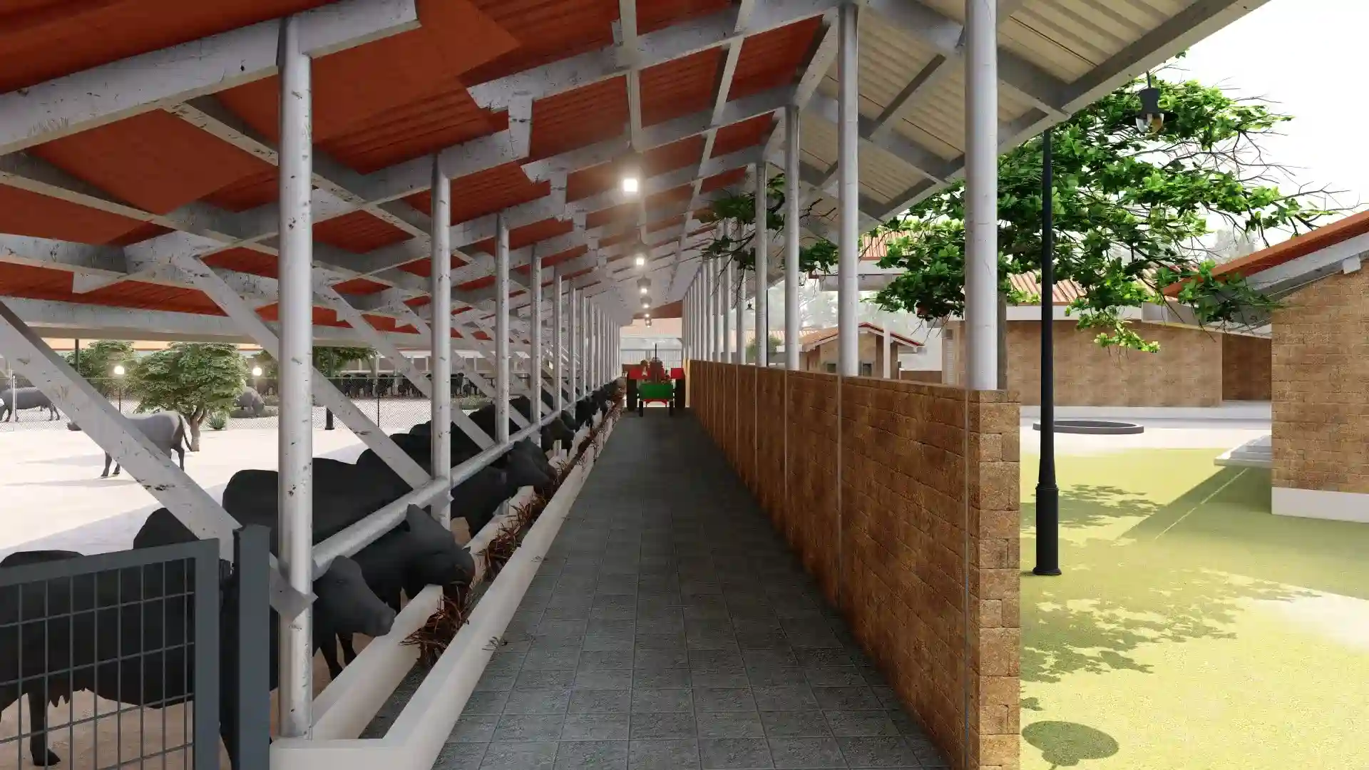 32000 sq.ft. breeding center spread over 2 acre of land which is located in rural part of the Devgad, Shiravli. Breeding center accommodates 300-400 cows and buffaloes along with ancillary facilities. We prioritize efficient space management, circulation, drainage, and ventilation systems in order to promote better cow health and milk yield. the final design was informed by existing site conditions and the need to divide different types of cows; milking cows, non-milking cows, pregnant cows, calves, and buffaloes. The space is carefully designed to consider the efficiency of inlet food flow for the cows and the removal of organic waste such as cow faeces and urine. Systems to collect milk is also incorporated into the design. The space is ‘cattle sensitive’, providing necessary facilities and building a healthy environment for the cows